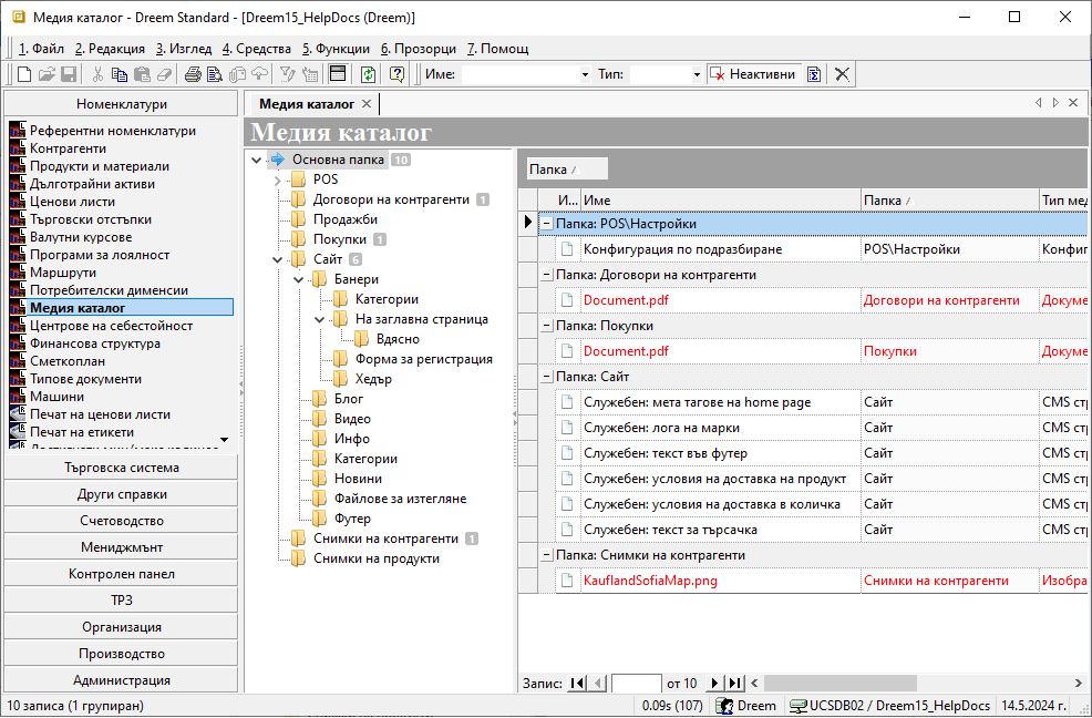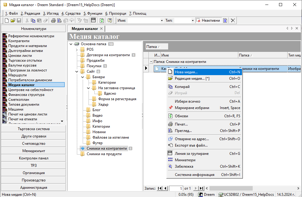 Данните лесно могат да бъдат добре систематизирани от меню Номенклатури » Медия каталог.