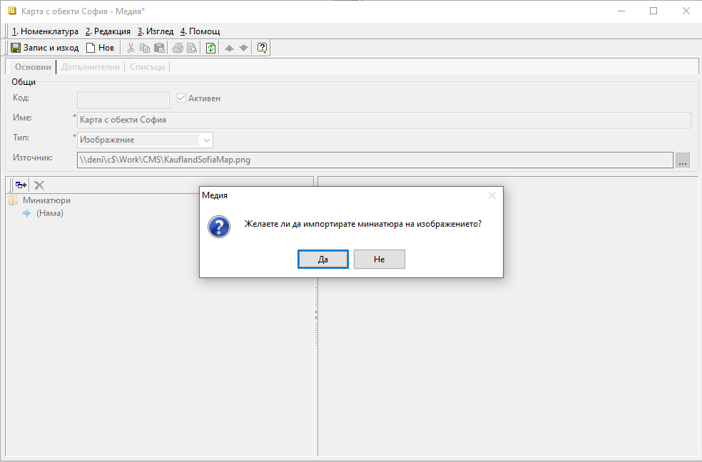 Ако предварително сте въвели изображението в желаната папка, в колона Файл посочвате пътя до него.
