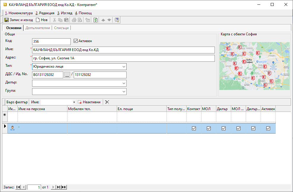 Същото изображение се показва и в панел Основни на формата за редакция на контрагент.