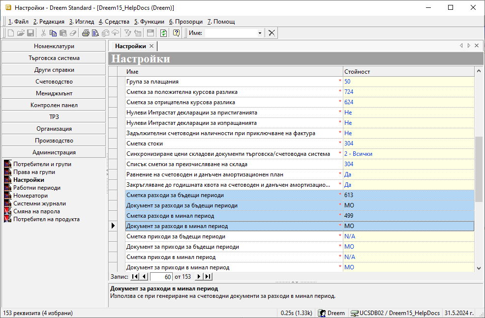 При работа с документи за минали или бъдещи периоди е задължително настройките на Работни периоди да бъдат съобразени. При липсващ разрешителен период системата не позволява приключване на документи или редактиране на дати.