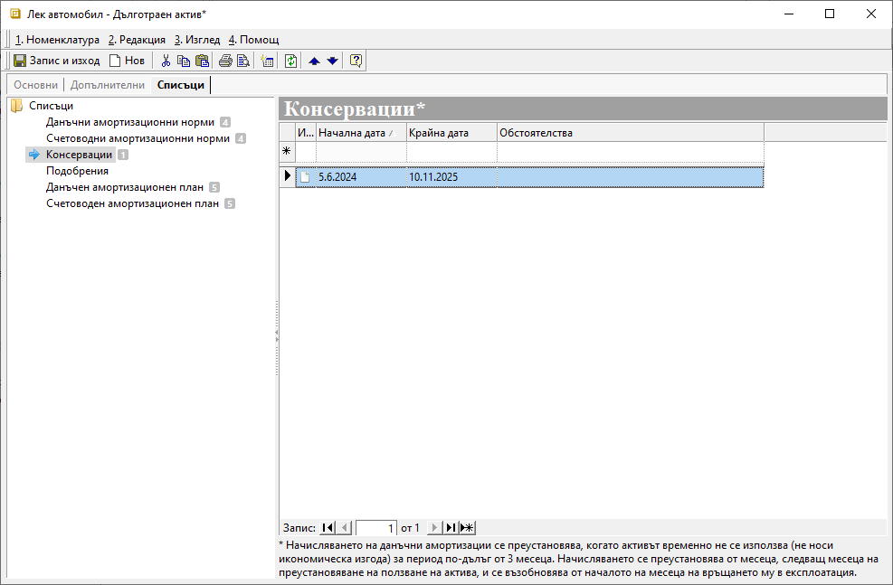 След записване на промените системата актуализира данните в данъчния и в счетоводния амортизационен план.