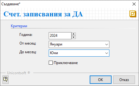 За да бъдат създадени счетоводни записвания за всички активни ДА, трябва да потвърдите желания период.
