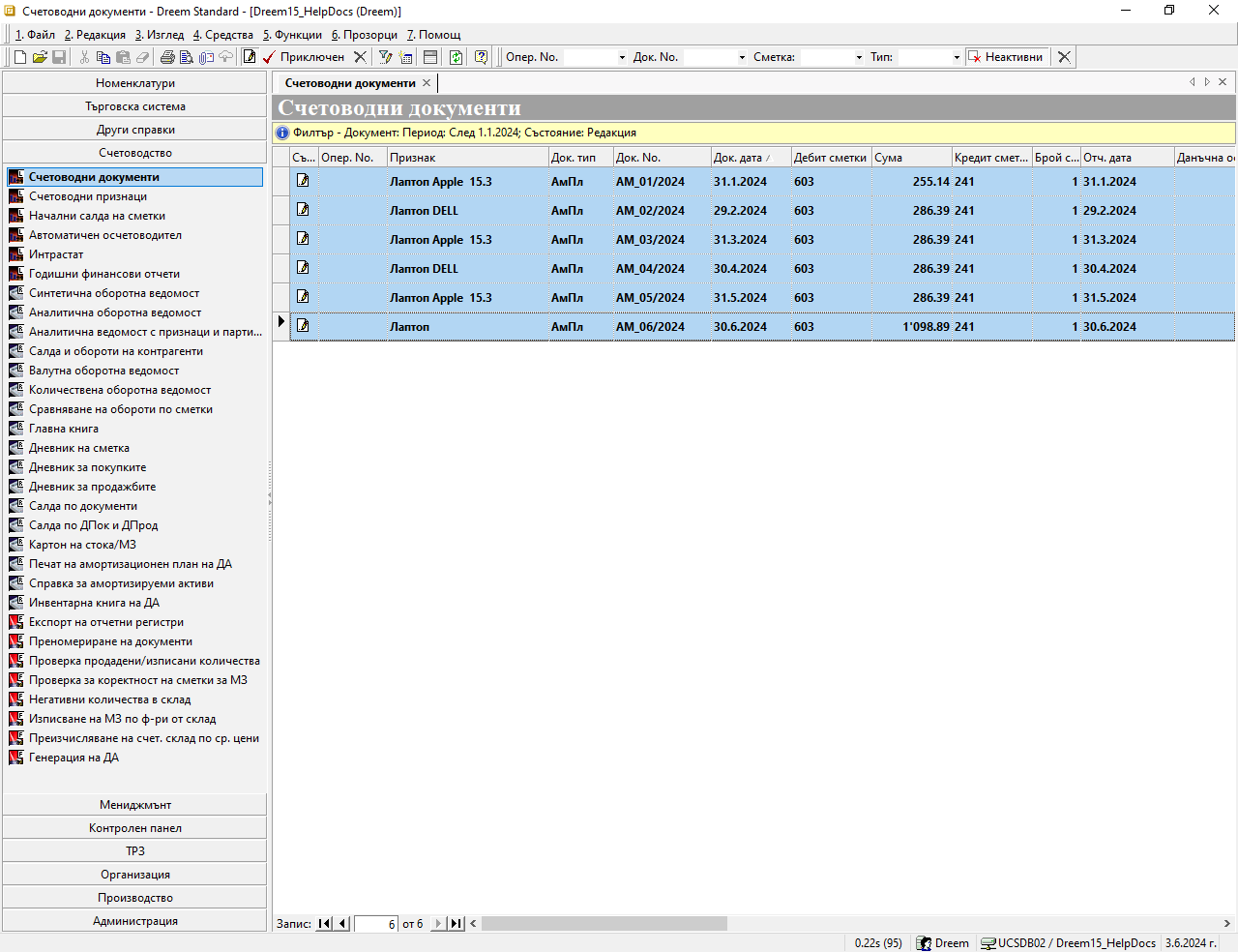 По този начин в меню Счетоводство » Счетоводни документи са генерирани по месеци документи от тип АмПл.