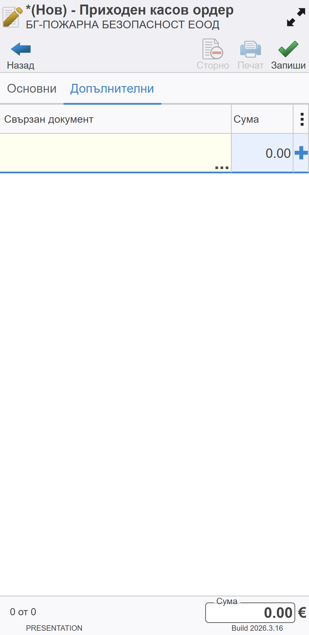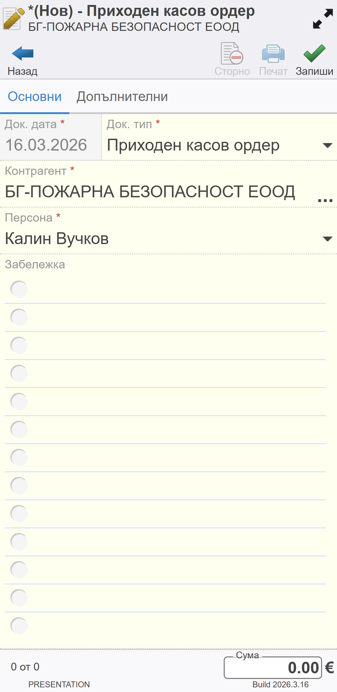 Създаване на нов касов документ#