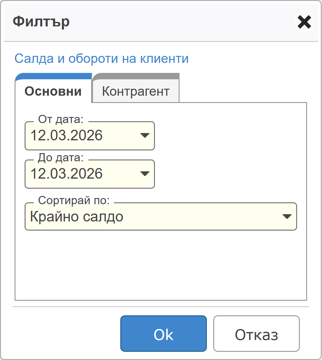 Системата позволява филтриране на данните за период по типове документи, контрагенти, дименсии и/или обекти.