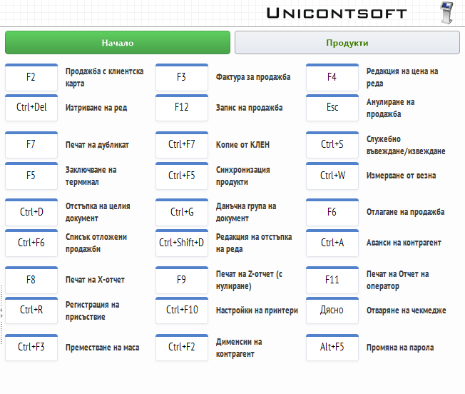 В раздел Начало са достъпни бутони с основни функции на Dreem POS.