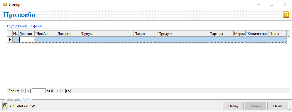 За преминаване на следваща стъпка се използва бутон [Напред]. С това системата прави нужните проверки. Ако изведе съобщение за грешка, трябва да отстраните нередностите и да направите повторен опит за импорт.