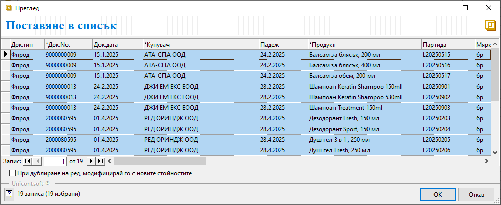 Ако сте съгласни с вида на предложения списък, продължете нататък с [Ok]. С това текущата форма се затваря автоматично.